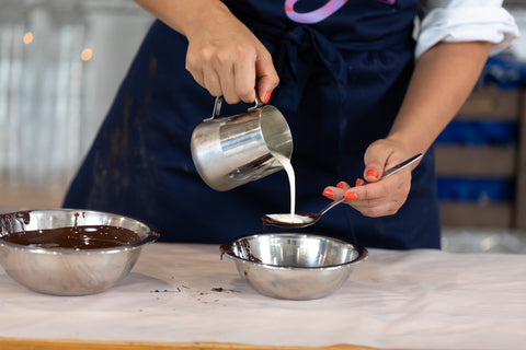 What makes us different? Our team of hosts, handpicked for their charismatic charm, bring an unexpected twist to chocolate-making. Think chocolate cocktails served in entirely edible glasses, sparking laughter, connection, and just the right amount of friendly competition.